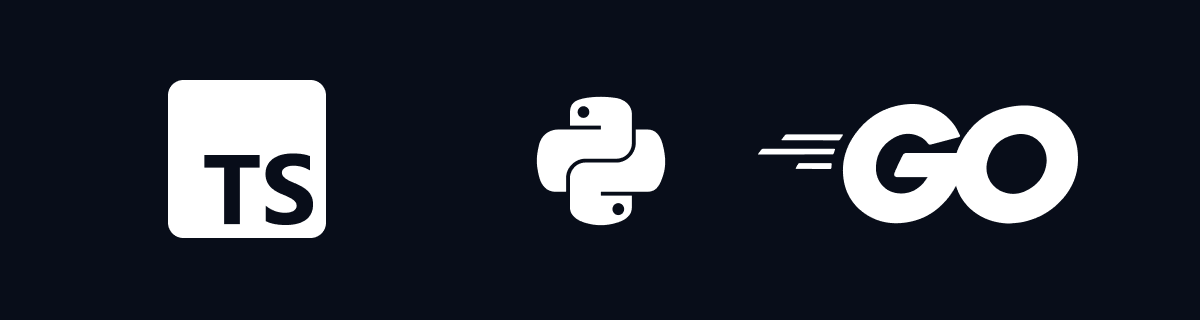 TypeScript, Python, and Go logos