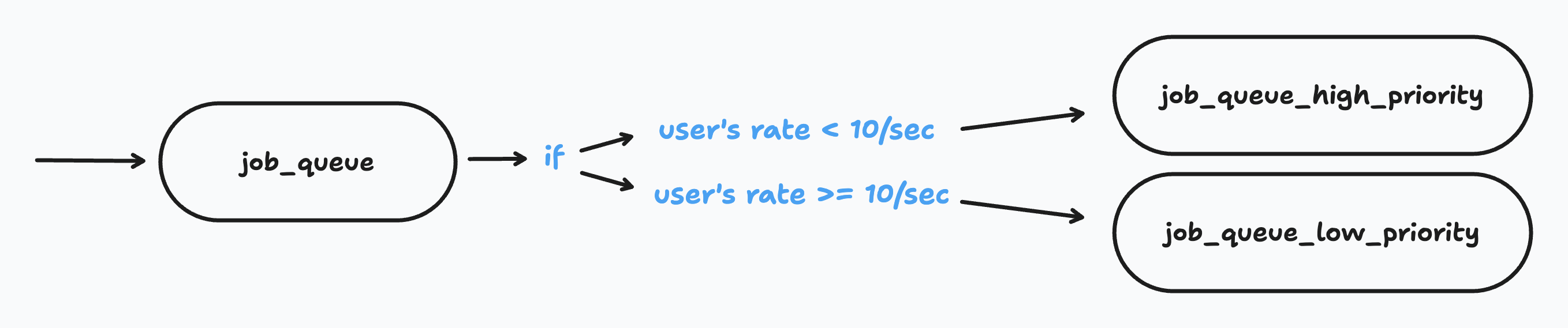• Implementing rate limiting: The system needs to track the rate of jobs for each user, for every queue. This is similar to API endpoint rate limiting, but requires additional infrastructure and logic to manage.